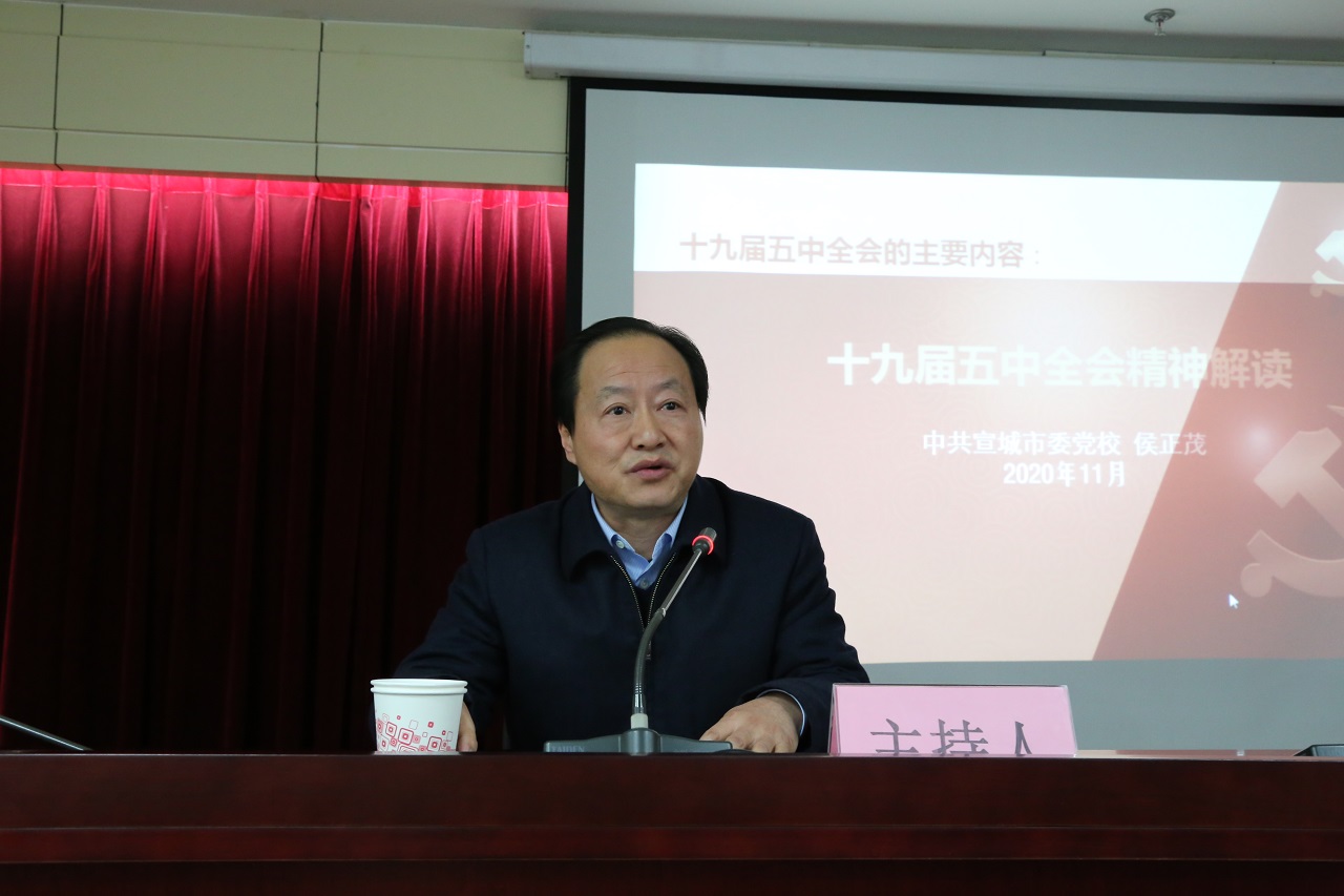 為進(jìn)一步抓實(shí)黨的十九屆五中全會精神的學(xué)習(xí)宣傳和貫徹落實(shí)工作,加深對全會精神的理解認(rèn)識,持續(xù)掀起學(xué)習(xí)熱潮,12月12日上午,市城建集團(tuán)邀請宣城市委黨校侯正茂副校長在建設(shè)科技大廈12樓會議室開展十九屆五中全會精神宣講。市城建集團(tuán)總經(jīng)理衛(wèi)民主持宣講會,集團(tuán)公司領(lǐng)導(dǎo)班子成員、各部門負(fù)責(zé)人、各子公司中層以上領(lǐng)導(dǎo)干部及全體黨員同志參加。