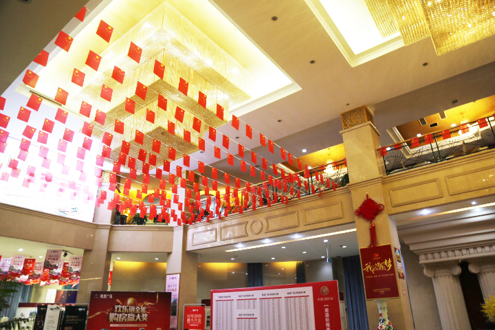一是在公司門前設置“歡度國慶”的花壇,錦繡的花壇吸引路過的群眾紛紛駐足留影。售樓部大廳里懸掛的一面面嶄新的國旗,洋溢著喜慶歡樂的節(jié)日氣氛;二是在澄江路、民生路以及小九華路的路燈燈桿上懸掛國旗,鮮艷的國旗像一條飄動的紅絲帶綿延不盡,讓來往的行人沉浸在自豪的中國紅之中;三是在建設工地四周的圍擋上張貼了迎國慶系列公益廣告,讓喜慶的氛圍更加濃烈。四是大唐御苑、鳳凰城、財富廣場等物業(yè)小區(qū)在張貼慶祝新中國成立70周年宣傳海報的同時,集中力量對小區(qū)公共區(qū)域進行清潔整理,共同維護好市容市貌。