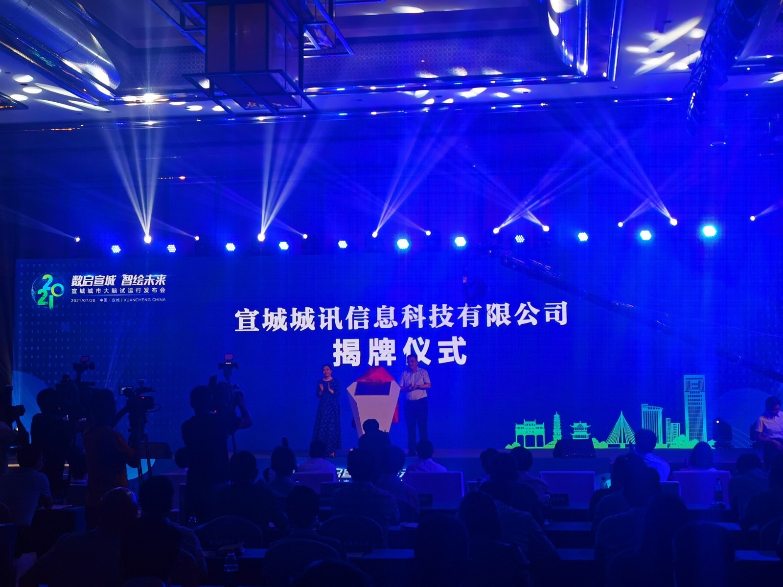 7月28日上午,宣城城市大腦試運(yùn)行發(fā)布會在敬亭湖賓館隆重舉行,發(fā)布會上宣城市委常委、常務(wù)副市長于靜波和科大訊飛股份有限公司高級副總裁張友國共同為宣城城訊信息科技有限公司(城建集團(tuán)與科大訊飛合資公司)揭牌。