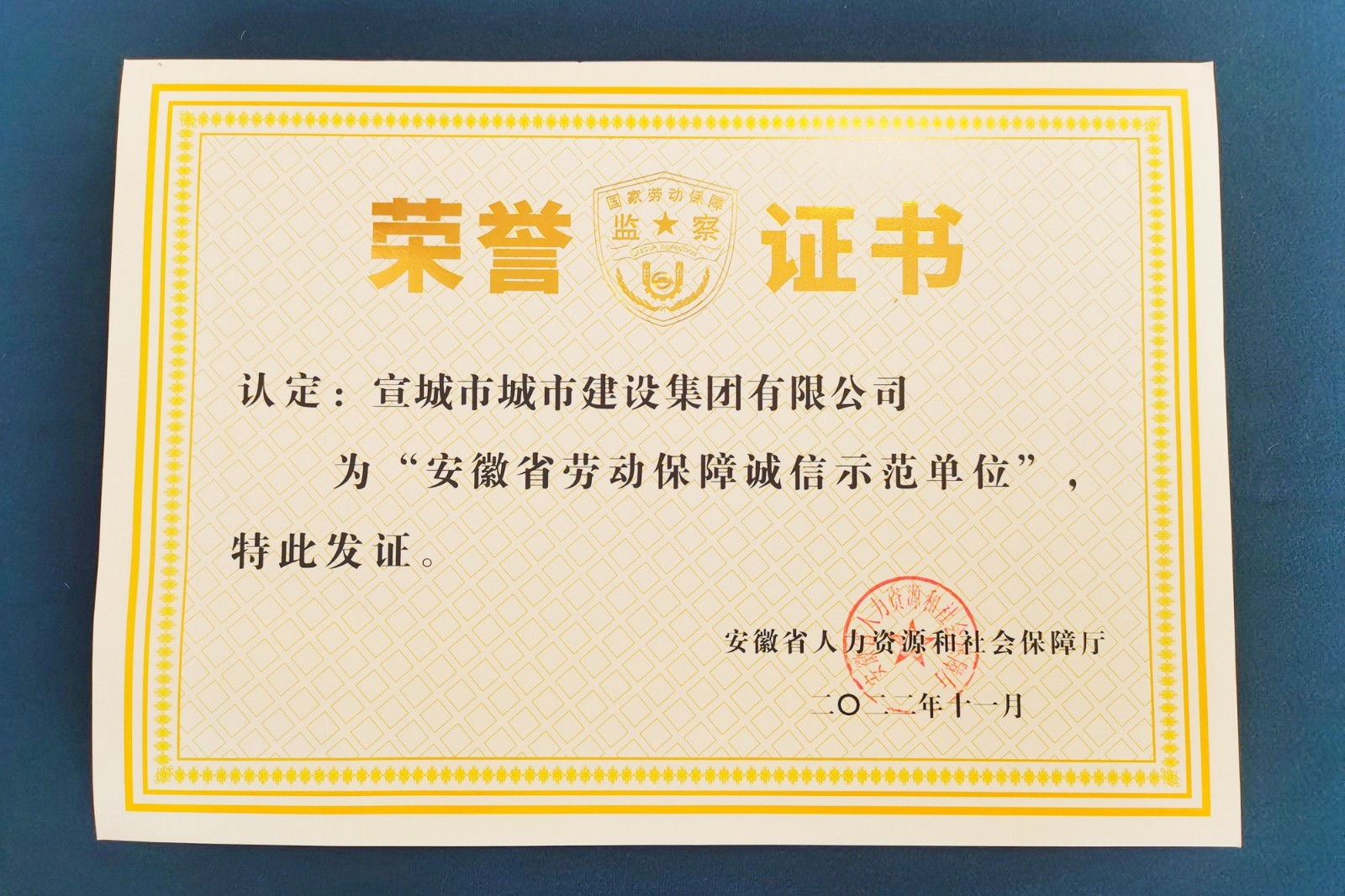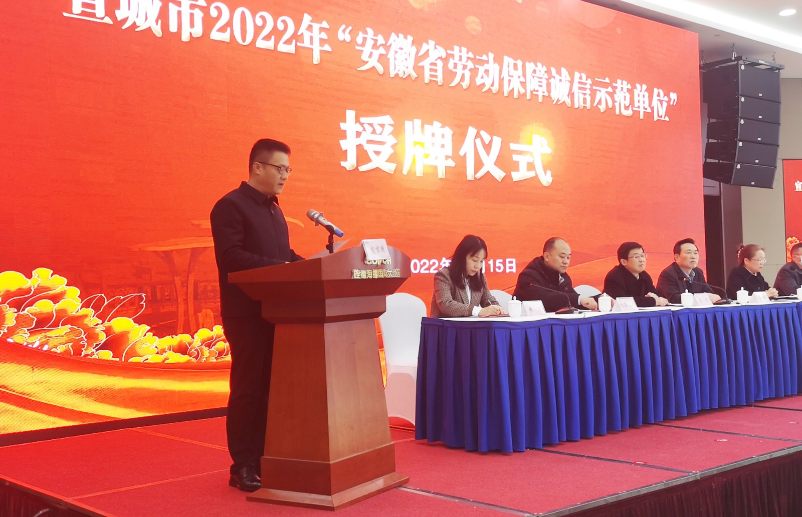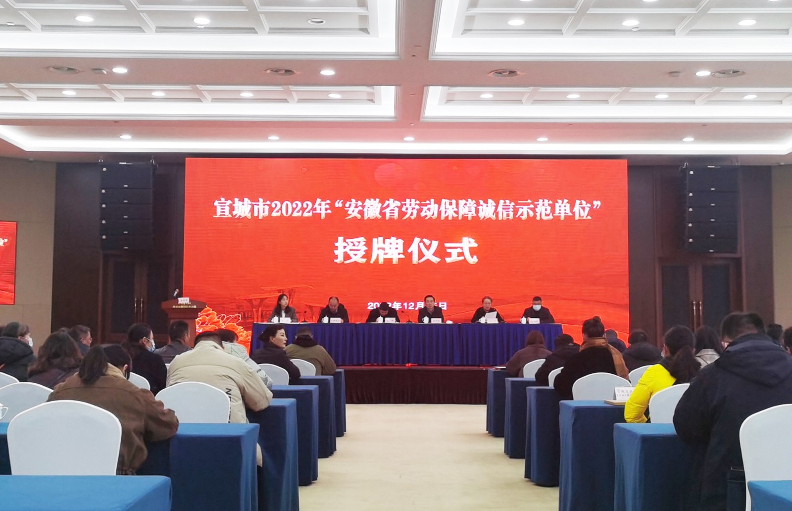 12月15日,宣城市2022年“安徽省勞動(dòng)保障誠信示范單位”授牌儀式在旌德舉行,省人社廳勞動(dòng)保障監(jiān)察局局長徐尚振,宣城市委組織部副部長、人社局局長吳明等領(lǐng)導(dǎo)出席。會(huì)上向宣城城建集團(tuán)等12家單位頒發(fā)了“安徽省勞動(dòng)保障誠信示范單位”牌匾和證書,集團(tuán)監(jiān)事會(huì)主席汪國球代表獲得榮譽(yù)單位做交流發(fā)言。