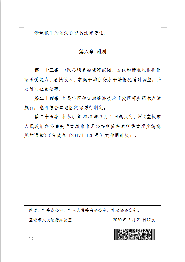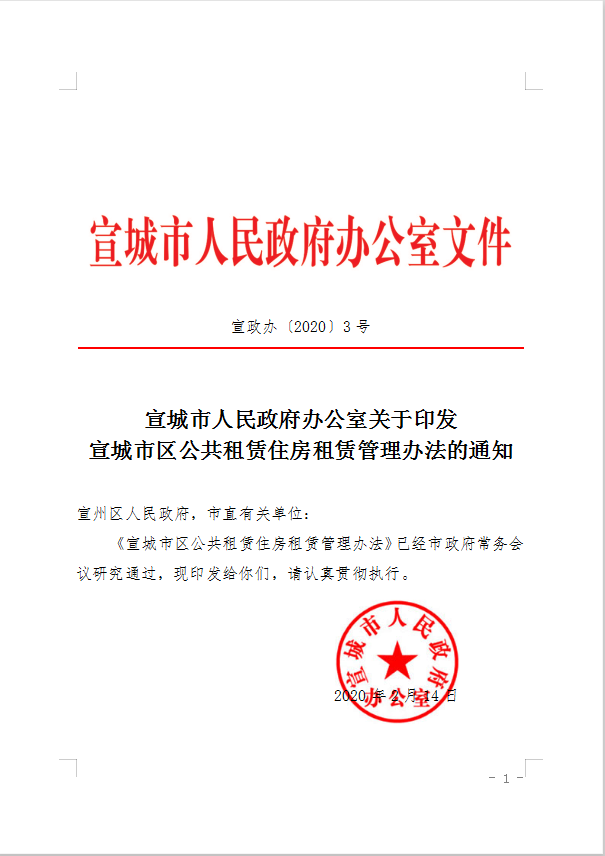 宣城市人民政府辦公室關(guān)于印發(fā)宣城市市區(qū)公共租賃住房租賃管理辦法的通知